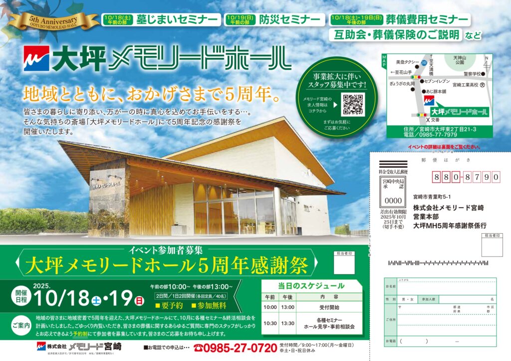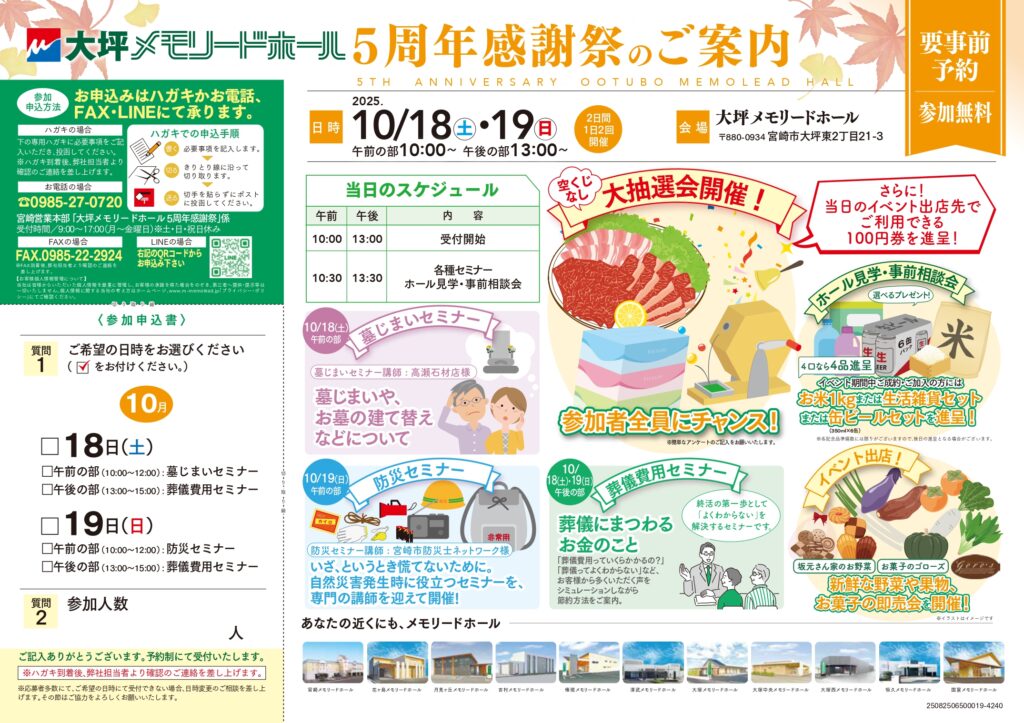 2025.10.06イベント案内10月18(土)・19日(日)大坪メモリードホール「5周年感謝祭」開催!!