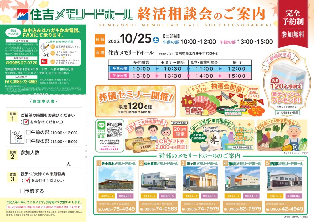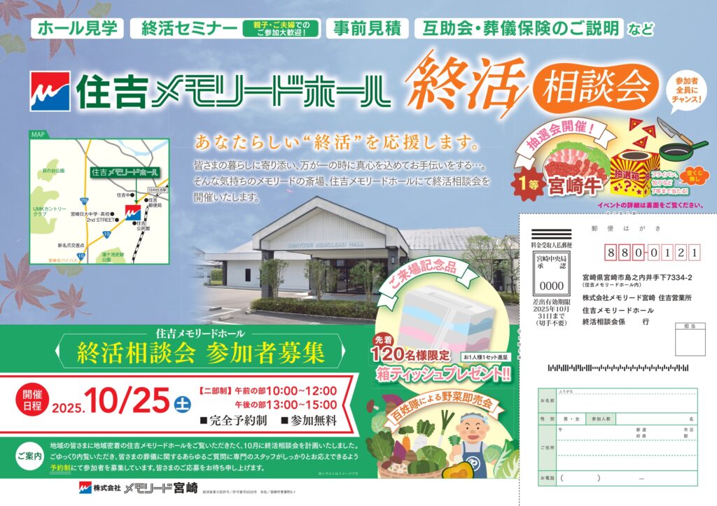 2025.09.30イベント案内10月25日(土)住吉メモリードホール「終活相談会」開催!!