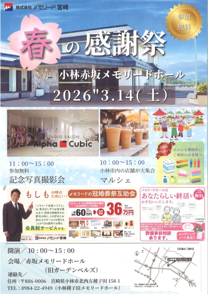 3月14日(土)『小林赤坂メモリードホール感謝祭』を開催します!!