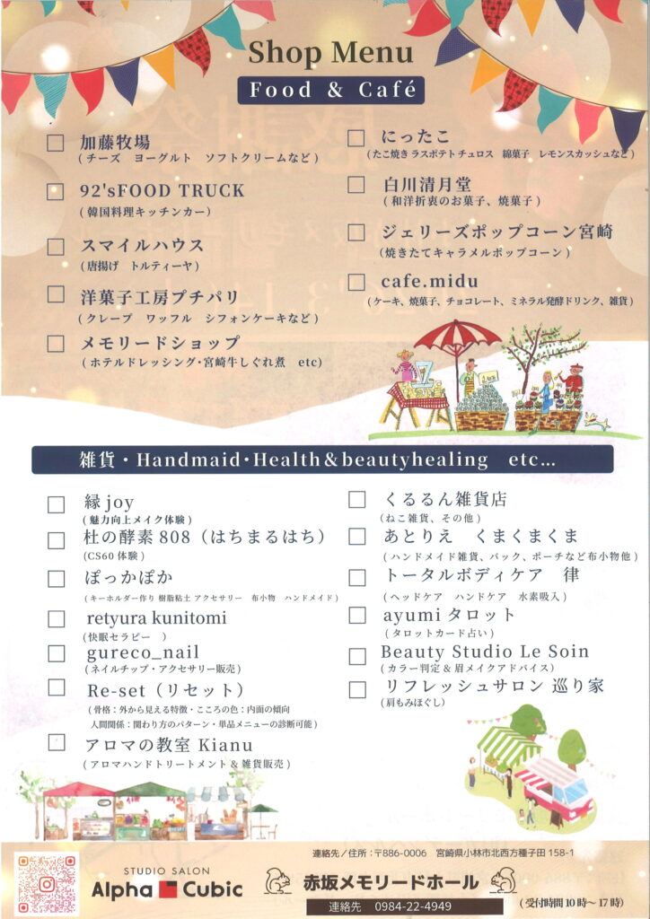 内容 :小林市内の店舗様 合計21店舗様参加のマルシェ